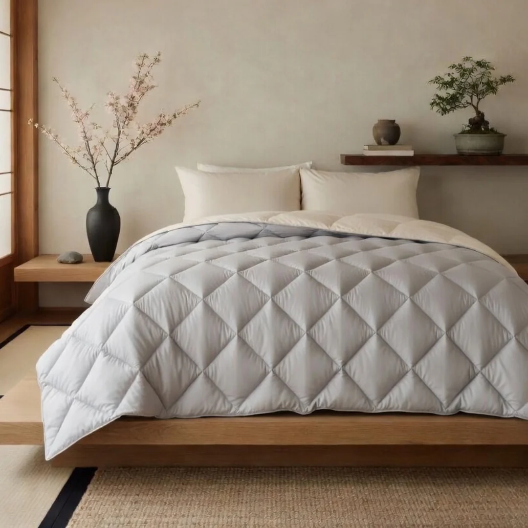Dekbed Zonder Overtrek Mat Satijn Grey / Offwhite (220cm lang)