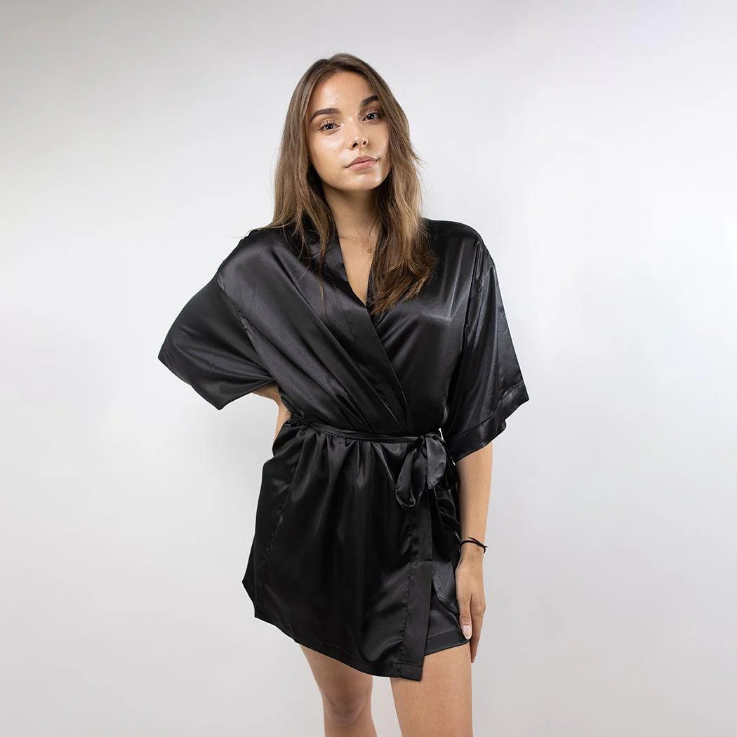 Ben jij op zoek naar comfortabele maar toch sexy loungewear? Een satijnen kimono in de kleur zwart is een prachtige en luxueuze toevoeging aan elke garderobe. Deze kimono is gemaakt van zacht satijn, een stof die bekend staat om zijn glans en zijdeachtige gevoel. De zwarte kleur geeft een frisse en elegante uitstraling, perfect voor een ontspannen dag thuis. Het geeft ook een sexy uitstraling dankzij de glans van satijn en de manier waarop het valt op het lichaam.